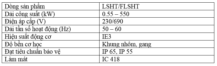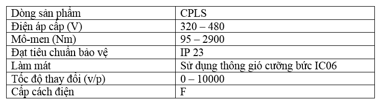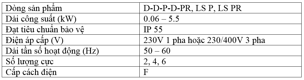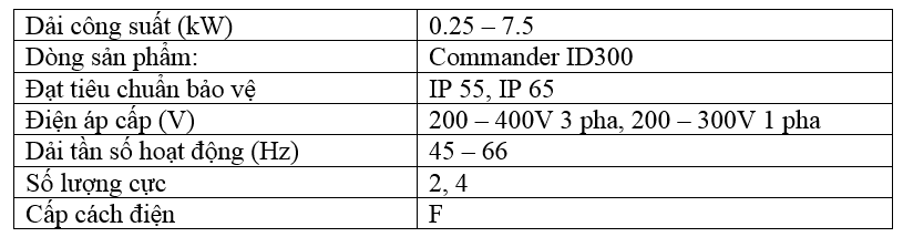 Bảng 5: Tổng quan động cơ 3 pha cho tốc độ thay đổi