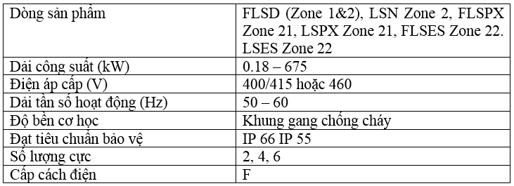 Bảng 6: Tổng quan động cơ cảm ứng an toàn cho môi trường khí ATEX hoặc bụi có khả năng nổ