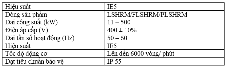 Bảng 8: Tổng quan động cơ đồng bộ hiệu suất cao đạt IE5