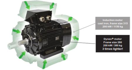 Hình 11: Động cơ Dyneo+ có kích thước nhỏ gọn hơn so với động cơ cùng công suất khác